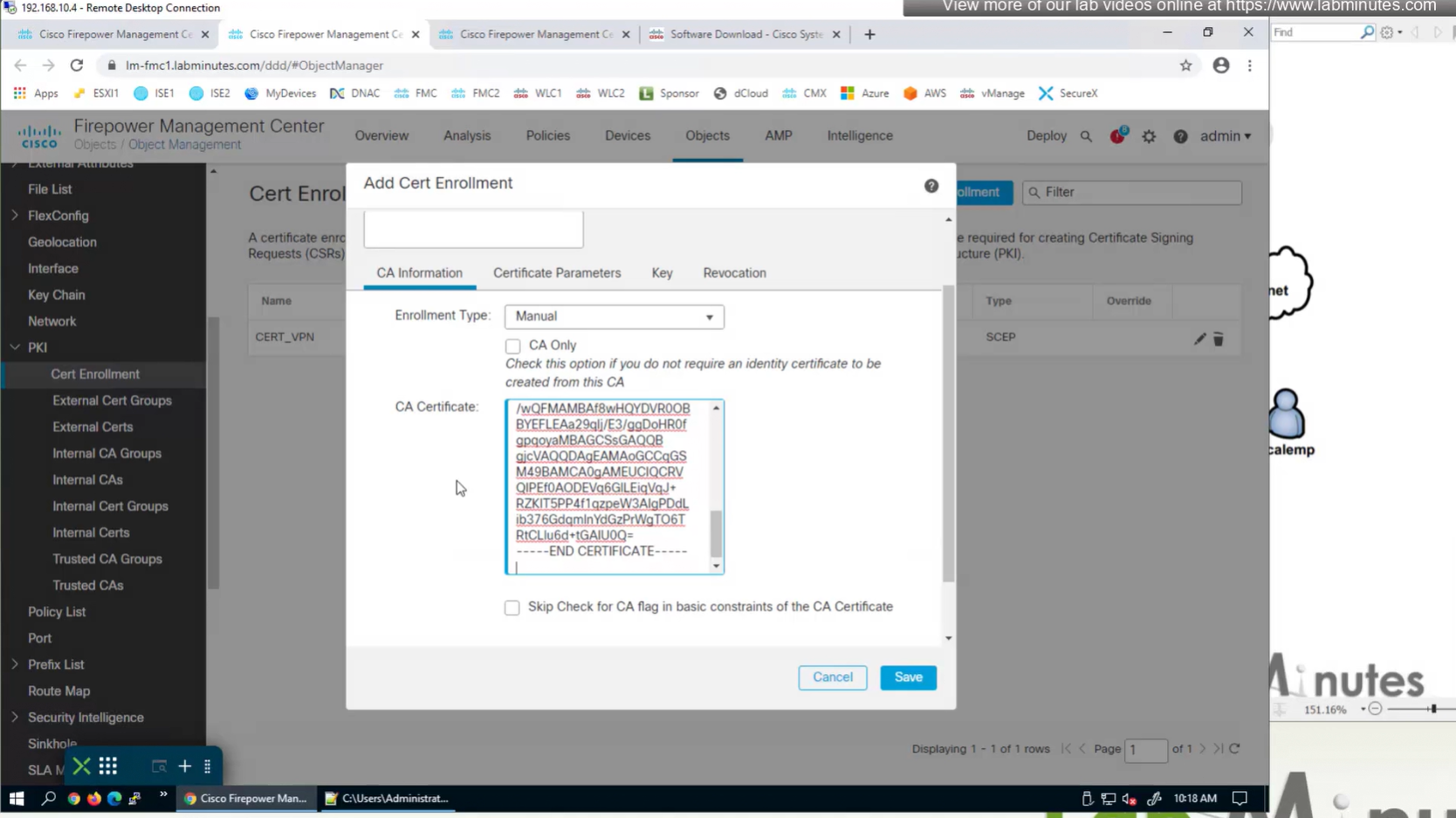 Certificate enrollment in Firepower is about securely obtaining a trusted certificate from a CA but here instead of SCEP we are doing manual certificate for firewall