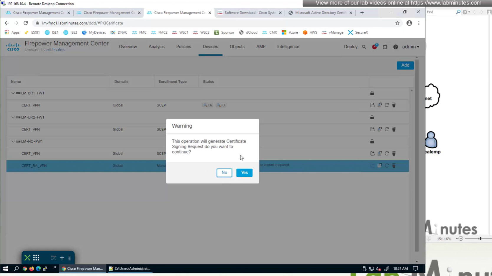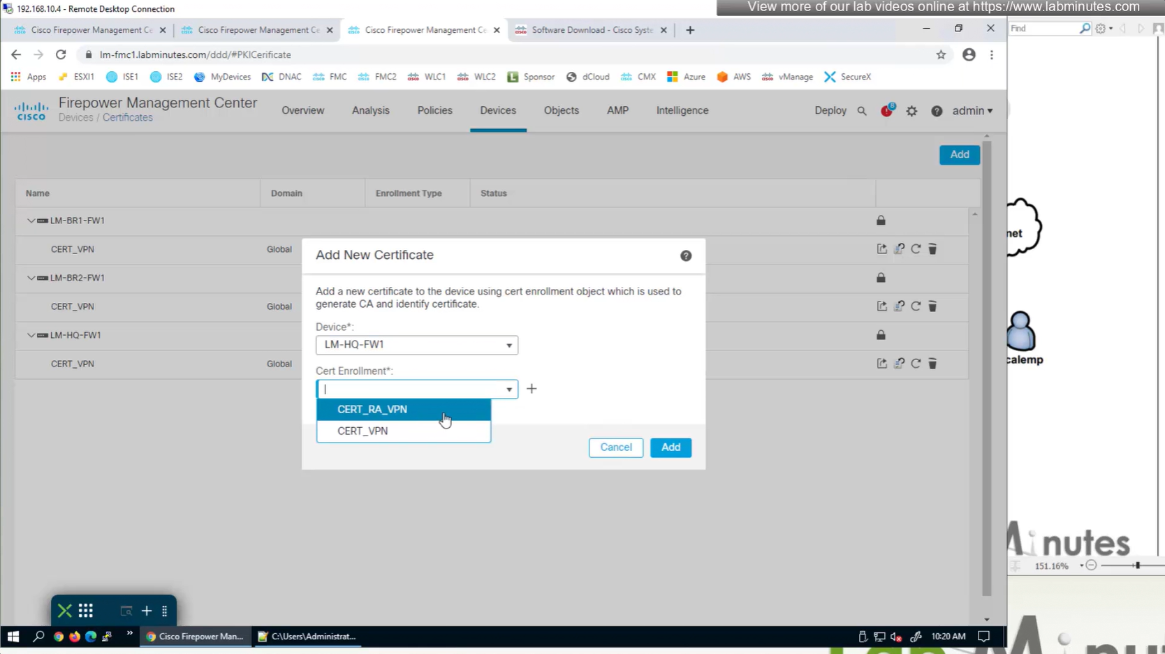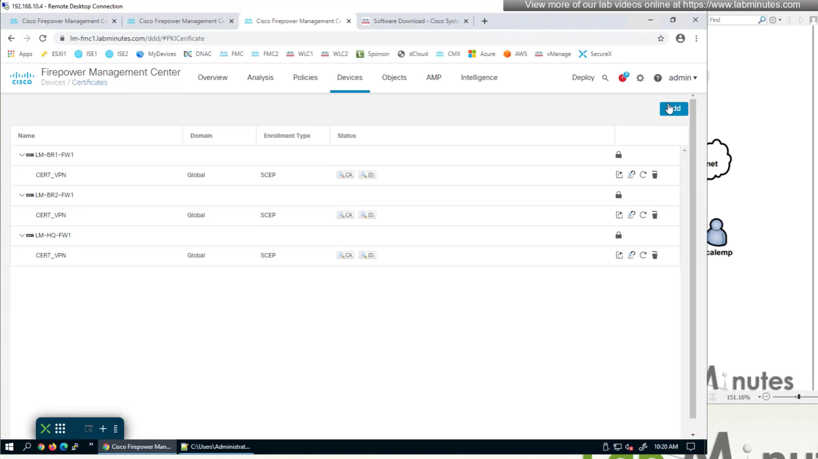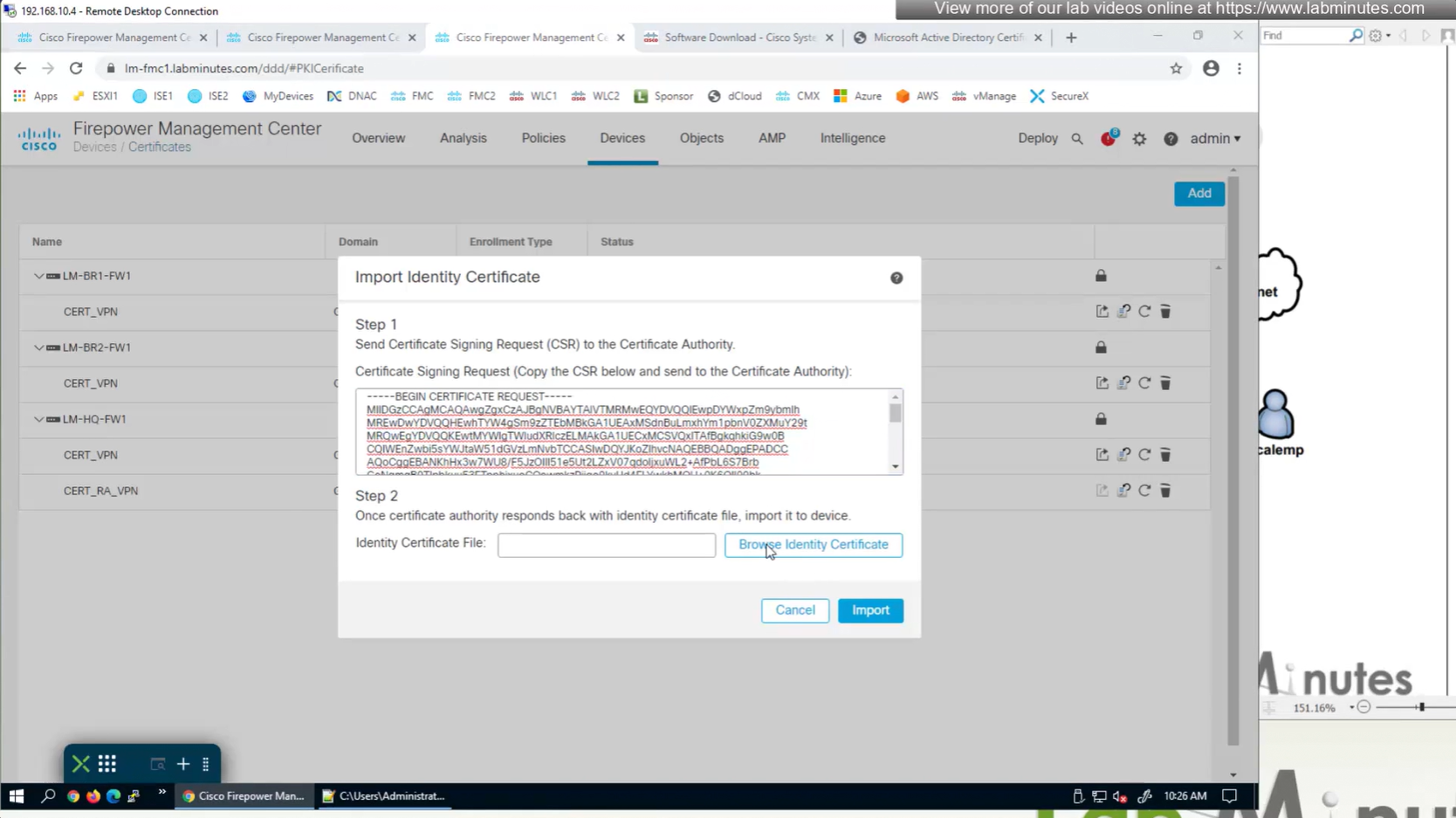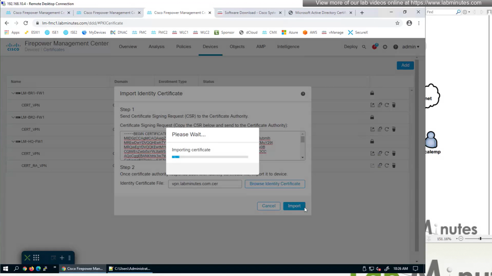Here we combine the Root CA cert and CSR parameters defined earlier and pin it to the firewall – and FMC then installs cert on the firewall along with Root CA cert