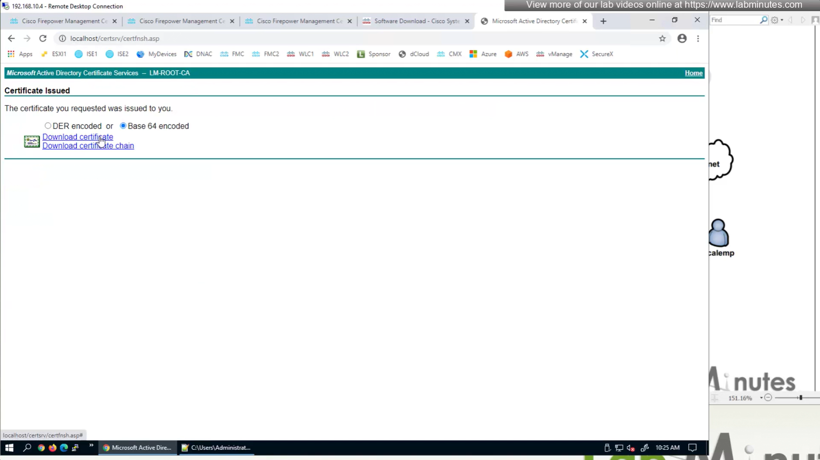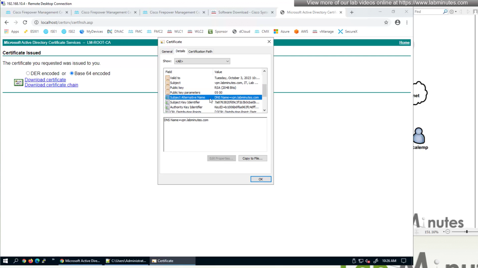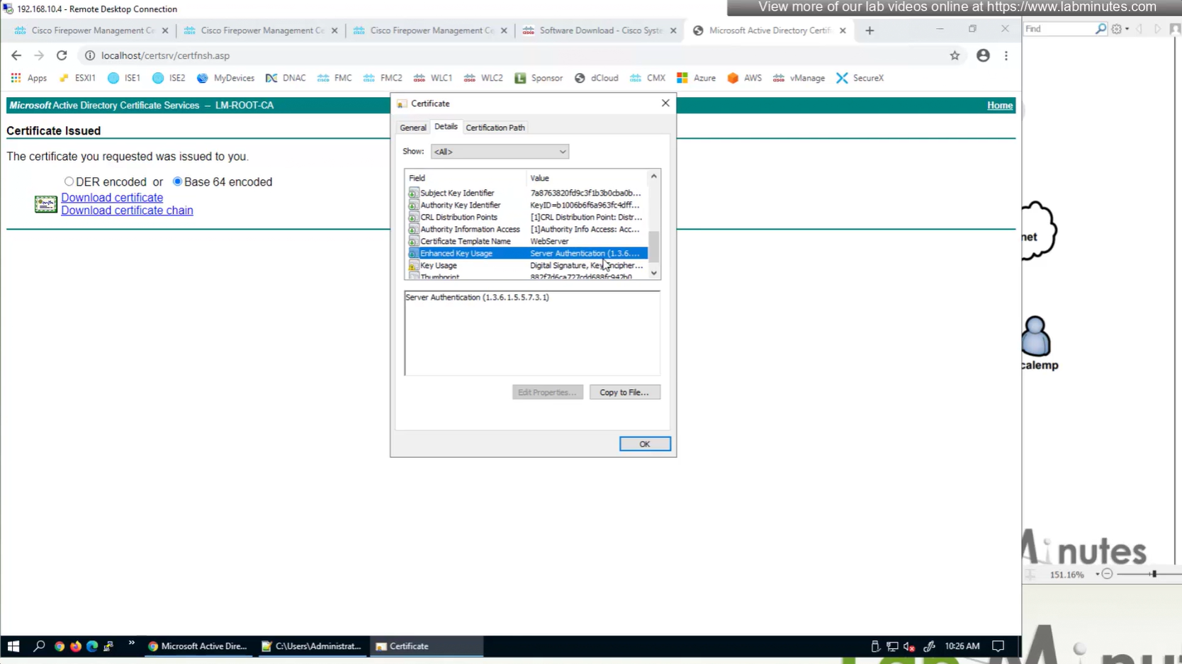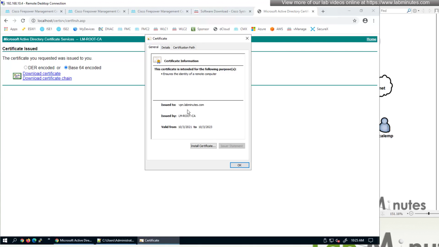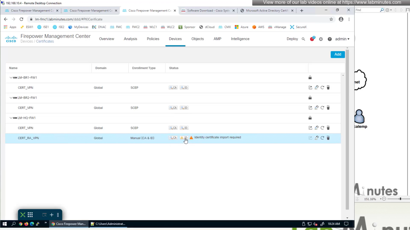 Here we combine the Root CA cert and CSR parameters defined earlier and pin it to the firewall – and FMC then installs cert on the firewall along with Root CA cert