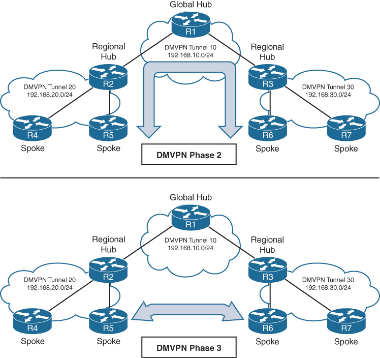 Each site is identified by its own VRF (Virtual Routing and Forwarding), by default communication between VRF is not allowed