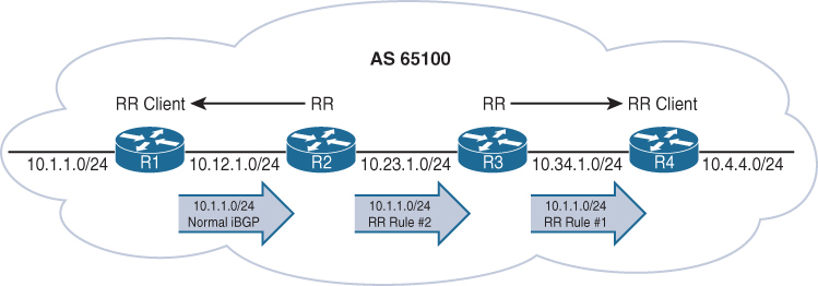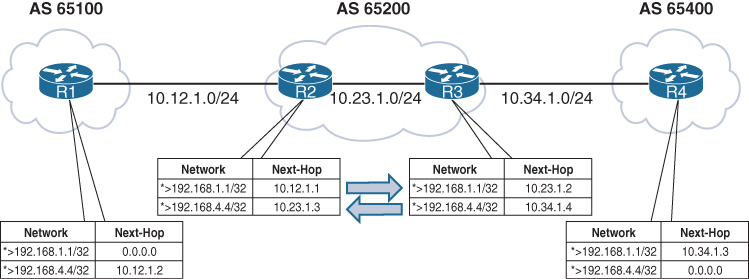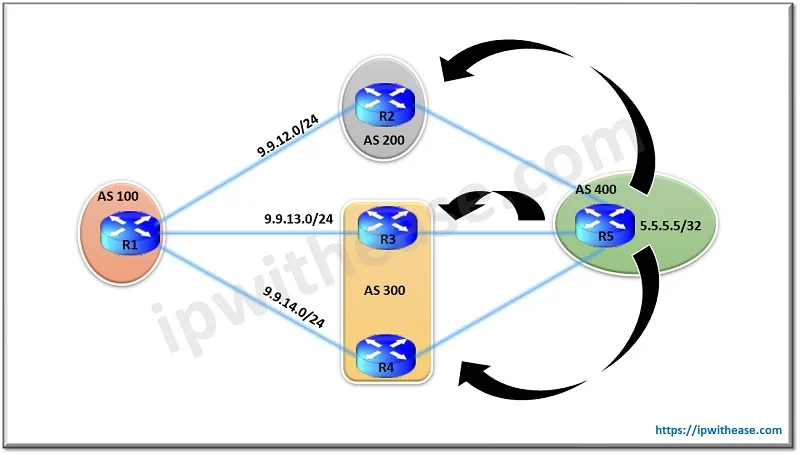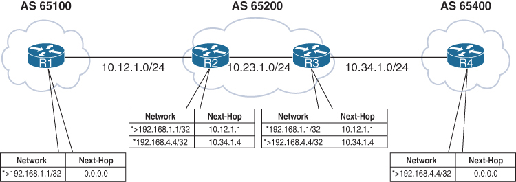 In case R1 and R4 are running bgp then next hop for 192.168.4.0/24 will be different and advertising router will be R3’s loopback address?
