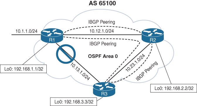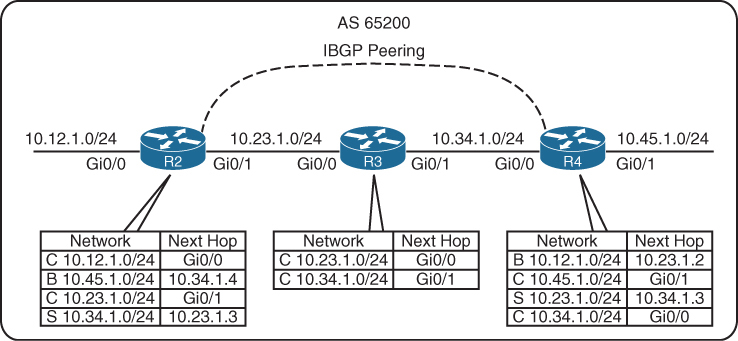 ✔ Next hop still points to R3 unless we use next-hop-self all on ibgp neighbor