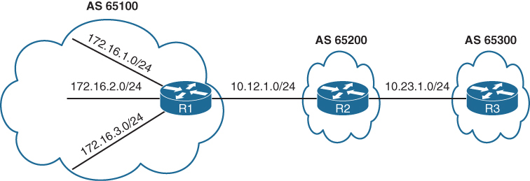 R1(config)#route-map PREPEND permit 10 R1(config-route-map)#set as-path prepend 1 10 100 R1(config-route-map)#exit R1(config)#router bgp 65000 R1(config-router)#neighbor 12.0.0.2 route-map PREPEND out