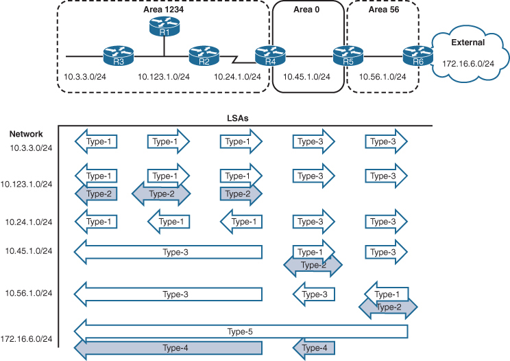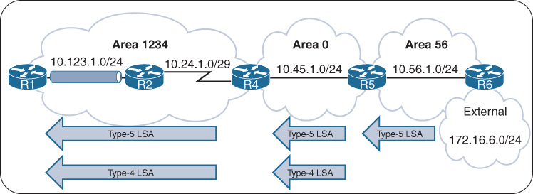 Most people would assume that R1 would learn about the route learned by Area 45 because R4 is an ABR. However, they would be wrong. ABRs follow three fundamental rules for creating Type 3 LSAs: