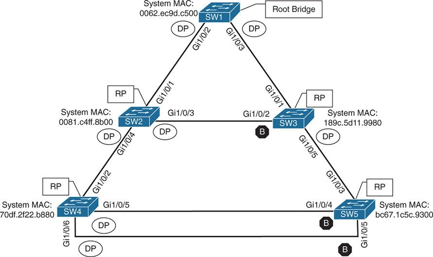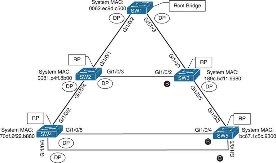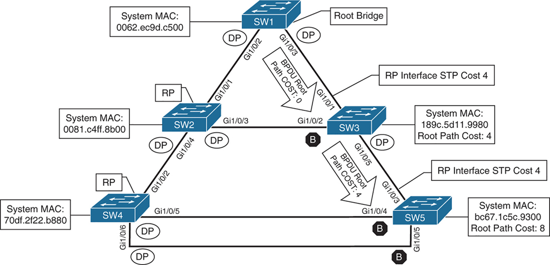 All SW1 ports = Designated Ports (DPs)