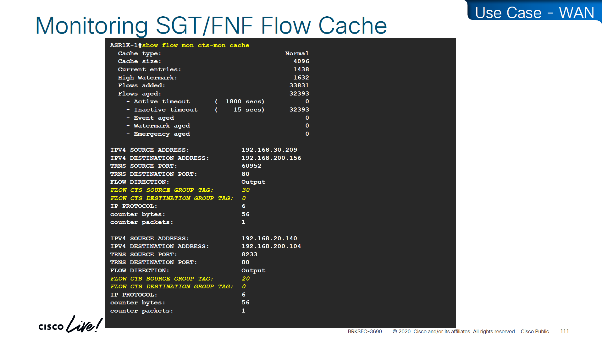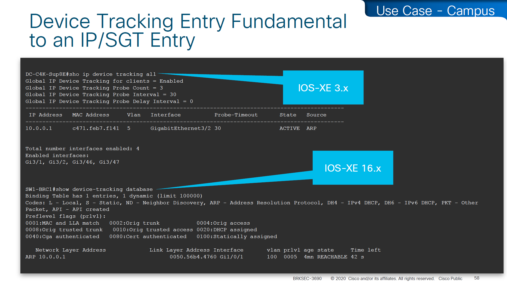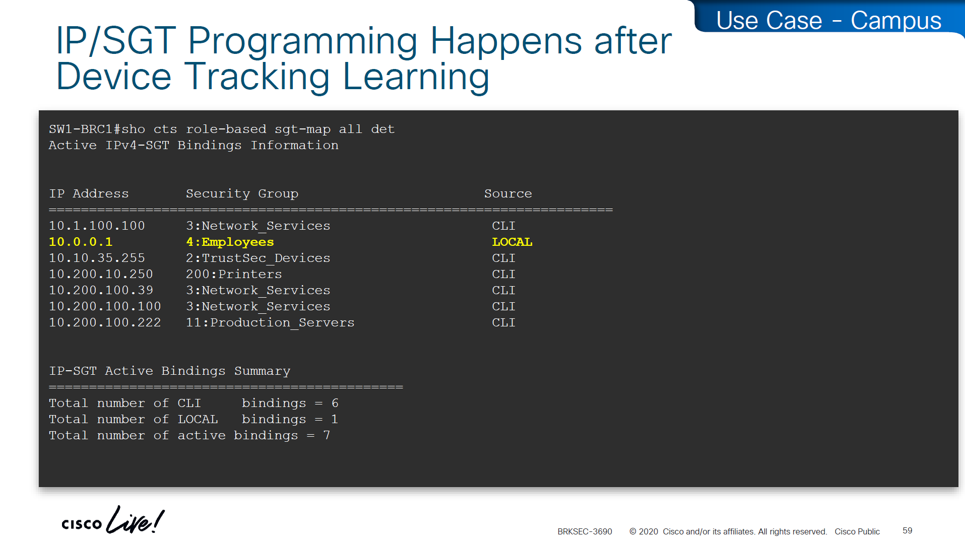 Find out the mac / destination port + the SGT assigned to host on that port – if not assigned on port derive from SXP learned IP to SGT table for that IP