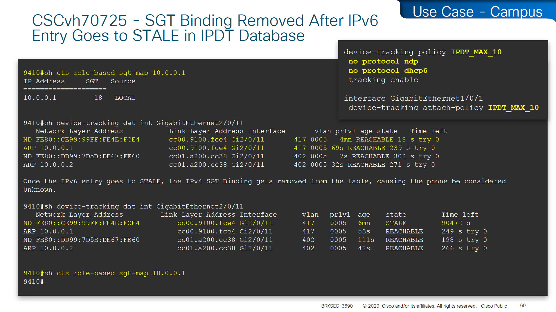 you will see that in above output we see destination tag as 0, because we are running this command on ingress or access layer where there is no info about destination host or its assigned SGT