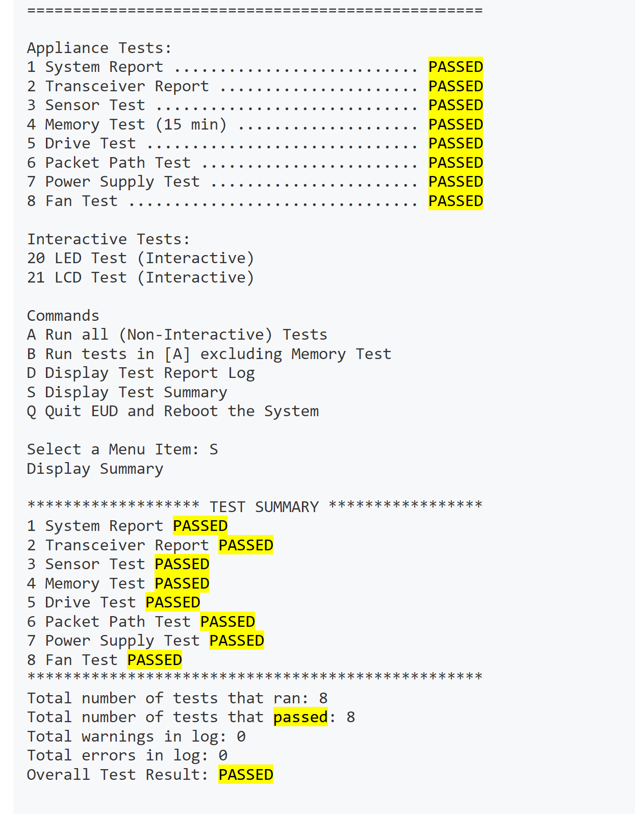 iHealth > Status > Hardware > Ctrl + F ‘Passed’